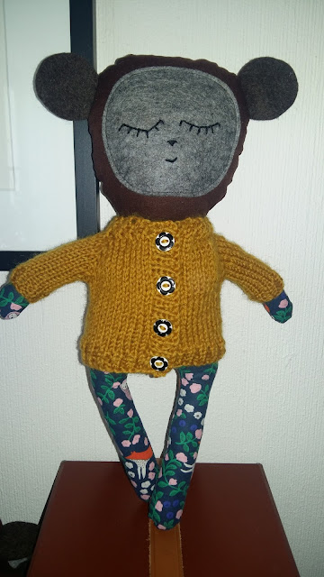 Garnet är inte heller någon favorit då det är ett sock garn med nylon i. Jag stickar ju allra helst i ren ull nu för tiden. Men då jag såg den liggandes i skåpet så tänkte jag genast på min lilla mamma. Det är vekligen hennes färger så den fick åka fram för att färdigställas. För egentligen är det inte så mycket att göra, ärmar, knappkanter och gömma steeken.